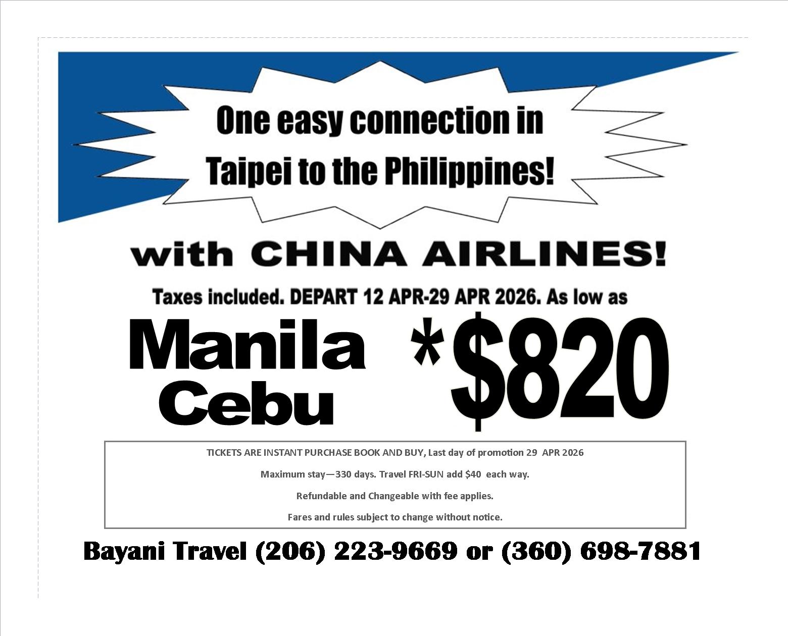 Thank you for assisting me to my travel needs keep it up!, GRACE Thank you for your immediate attention! God bless MORE to Bayani Travel!
